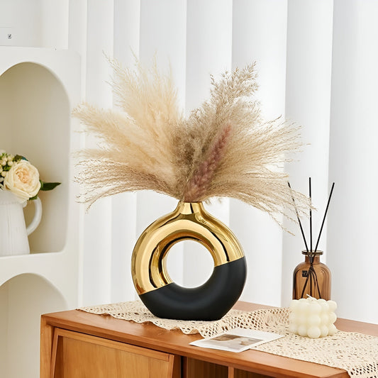 BLACK AND GOLDEN CERAMIC VASE [SET OF 2]