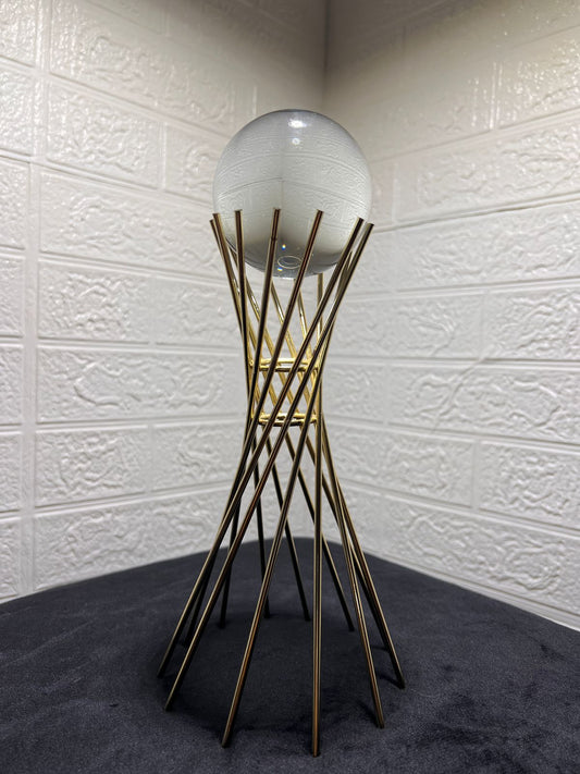 Modern elegance meets artistic design — golden spiral stands with crystal spheres that add a touch of luxury and sophistication to any space. Perfect as a statement decor piece for your home or office.
