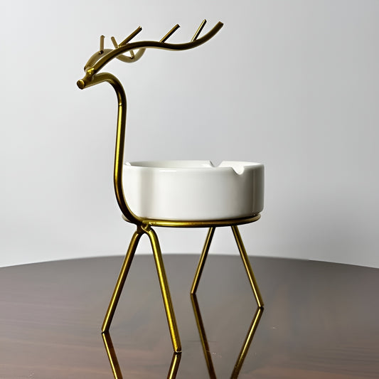 Elegant Deer-Shaped Ceramic Ashtray with Metal Stand